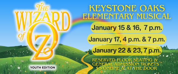 Tickets are on sale for Keystone Oaks elementary schools' production of The Wizard of Oz, Youth Edition 🌈👠